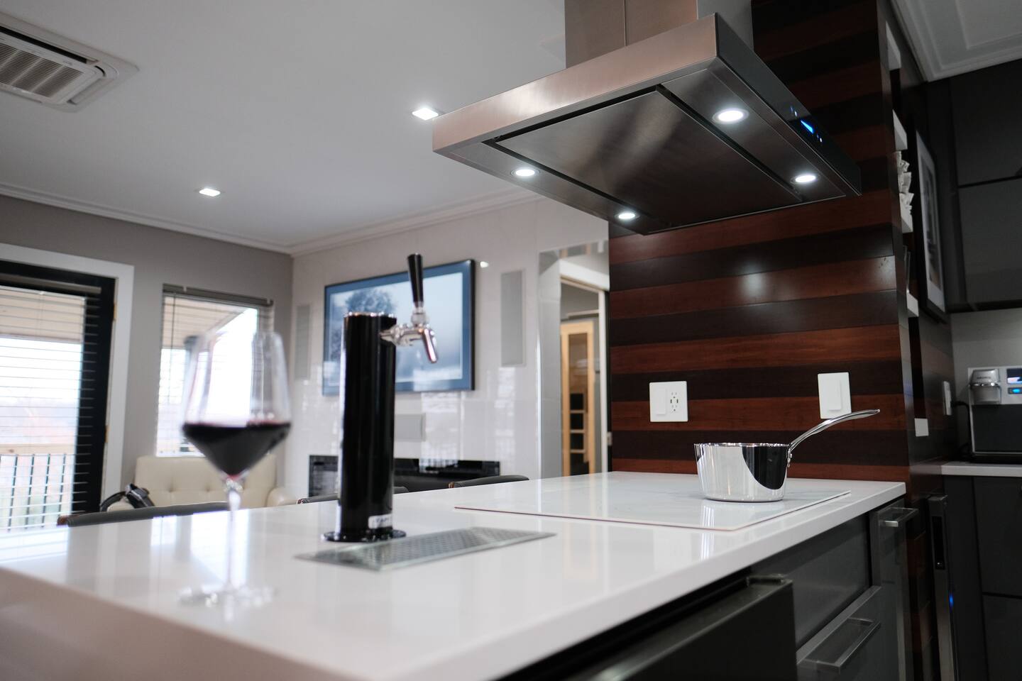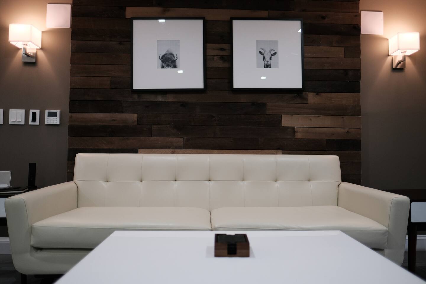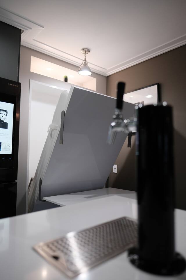 Adjustable, massaging queen bed, full size Murphy Bed, and rollaway twin XL bed means this luxury home can sleep two adults and two kids very comfortably.